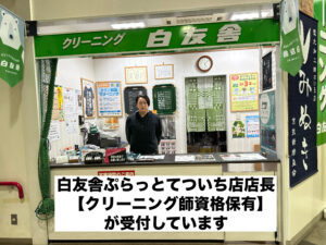 クリーニング白友舎ぷらっとてついち店には女性クリーニング師資格保有者がおりますので、お気軽にご相談くださいね☺️